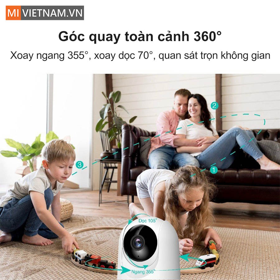 - Góc quay toàn cảnh 360°: Xoay ngang 355°, xoay dọc 70°, quan sát trọn không gian mà không có điểm mù.