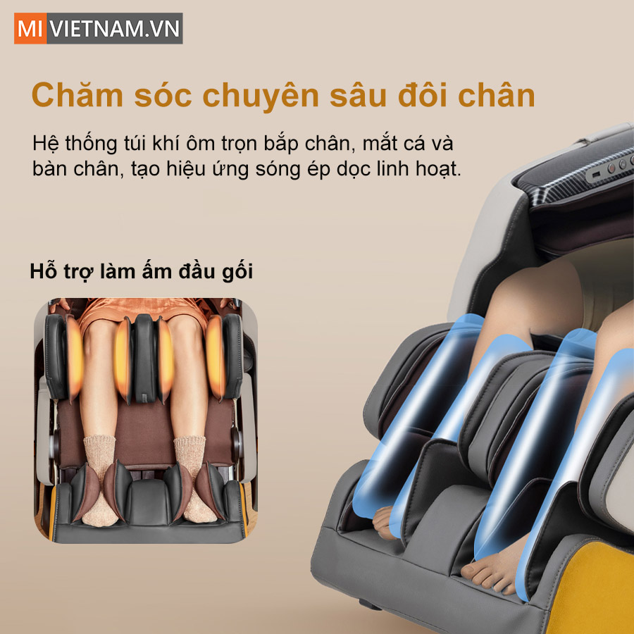 Bên cạnh đó, phần bắp chân không chỉ được massage mà còn hỗ trợ làm ấm đầu gối nhờ lớp sợi graphene dẫn nhiệt nhanh. Công nghệ này ôm sát khớp, duy trì nhiệt độ ổn định, giúp giảm đau khớp gối cho người cao tuổi hoặc người hay vận động, tập thể thao, mang lại cảm giác thư giãn sâu mỗi ngày dài.