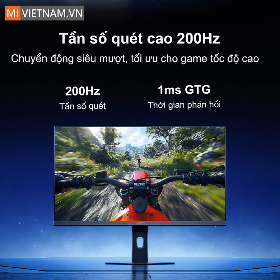 Màn hình máy tính Xiaomi Gaming G24i 2026 mang đến trải nghiệm hiển thị mượt mà và sắc nét vượt trội nhờ tần số quét 200Hz, thời gian phản hồi 1ms GTG và công nghệ FreeSync Premium. Sở hữu màn hình 23.8 inch Full HD với tấm nền IPS, chuẩn màu chính xác ΔE < 2 cùng HDR400 độ sáng 400 nits, sản phẩm đáp ứng tốt cả nhu cầu chơi game tốc độ cao lẫn làm việc, giải trí hằng ngày trong một thiết kế viền mỏng hiện đại, gọn gàng.