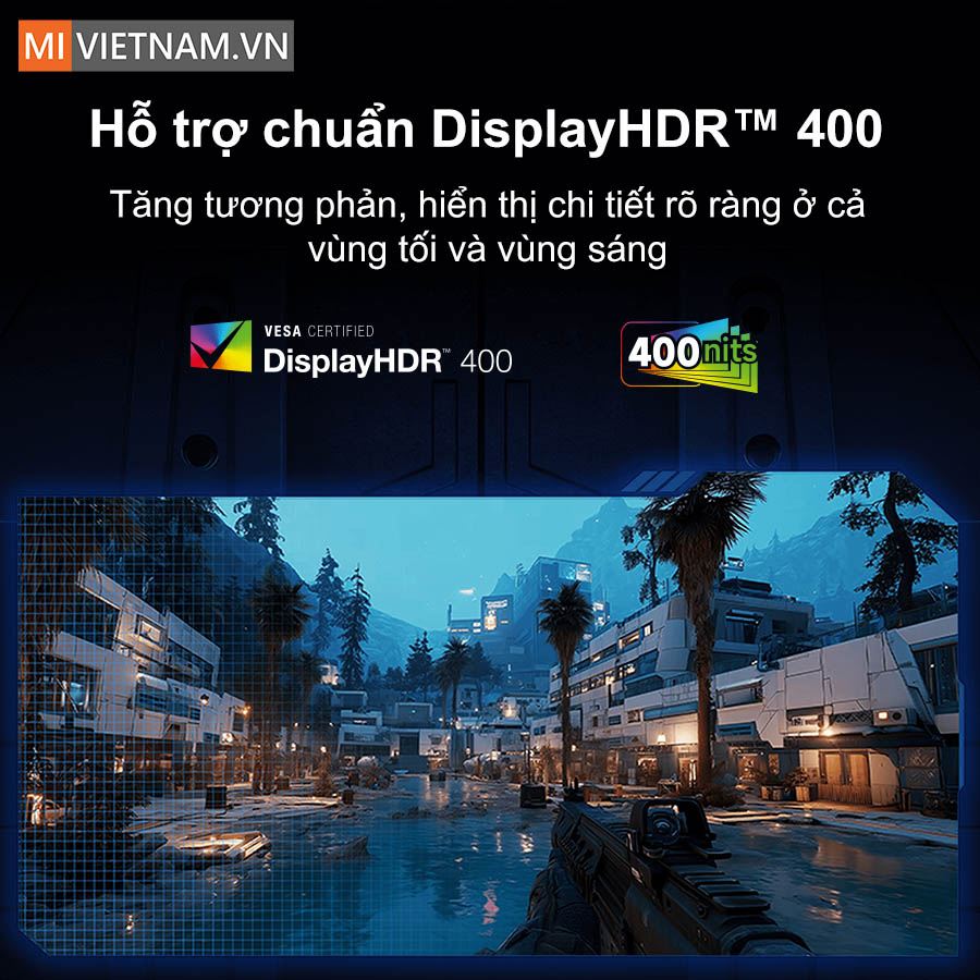 - Chuẩn hiển thị DisplayHDR 400 với độ sáng 400 nits cho độ tương phản rõ ràng, hình ảnh sống động