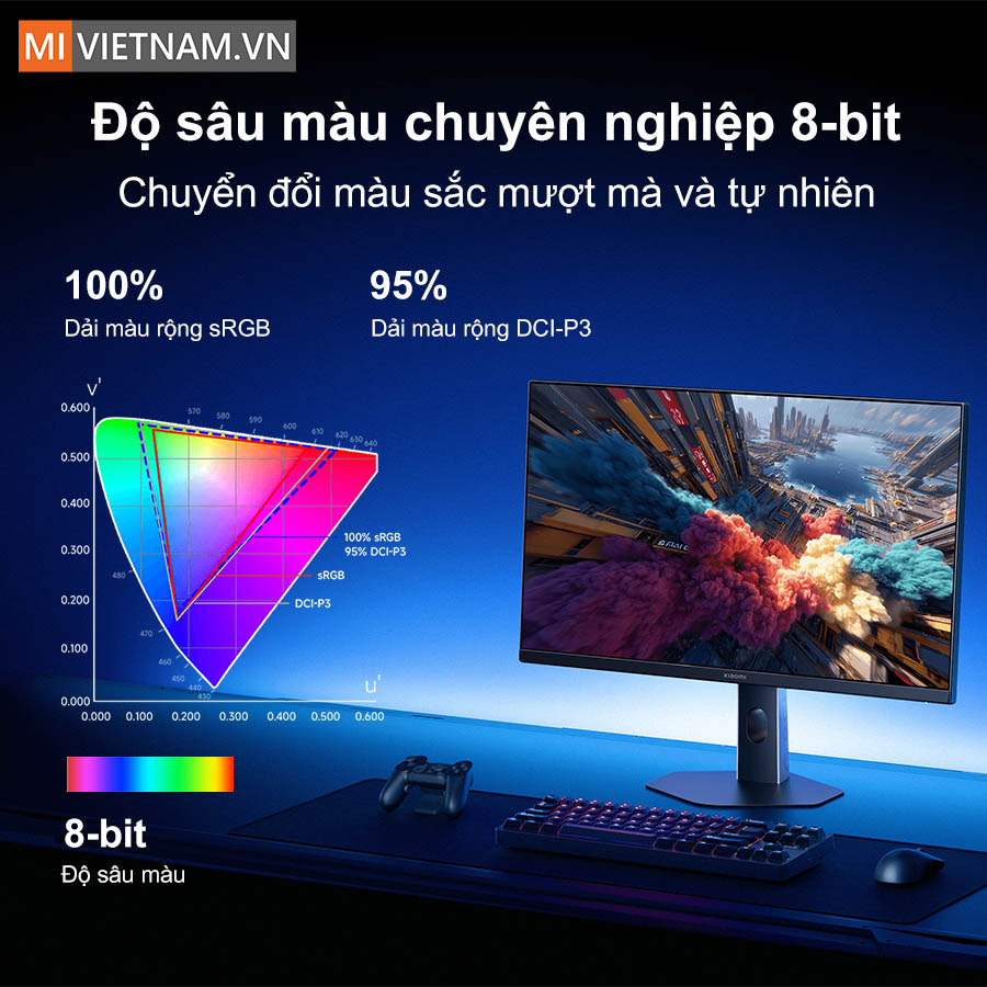 - Độ chính xác màu cao Delta E < 2 cùng gam màu rộng 100% sRGB và 95% DCI-P3