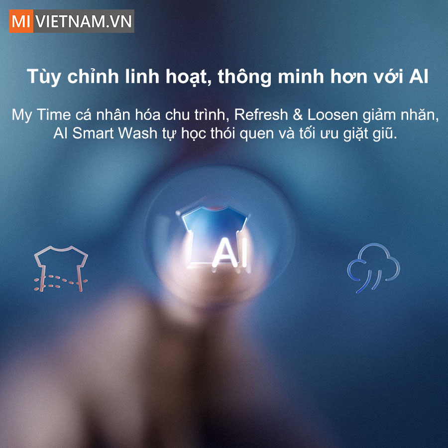 Bên cạnh đó, một điểm nổi bật trên máy giặt sấy cửa trước Xiaomi Mijia chính là tính năng AI Smart Wash, sử dụng trí tuệ nhân tạo học hỏi thói quen sử dụng máy giặt của từng gia đình. Qua thời gian, máy sẽ tự động đề xuất và tối ưu chu trình giặt, mang lại sự thuận tiện tối đa mà không cần điều chỉnh thủ công.