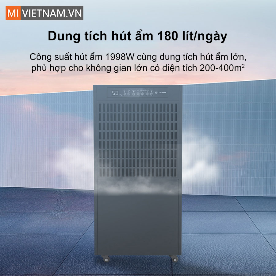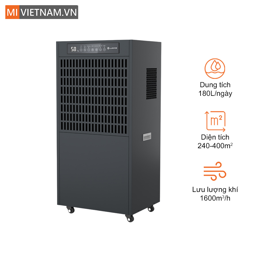 - Công suất hút ẩm lớn 180L/ngày, phù hợp không gian 250-400m²