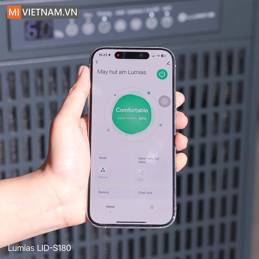 Máy hút ẩm công nghiệp Lumias LID-S180 sử dụng quạt ly tâm công nghiệp tạo luồng gió mạnh, phân bổ đồng đều khắp không gian rộng, hỗ trợ quá trình hút ẩm diễn ra nhanh hơn. Cảm biến độ ẩm có độ chính xác cao giúp đo lường và duy trì mức ẩm theo thiết lập. Ngoài ra, thiết bị còn hỗ trợ kết nối WiFi, cho phép điều khiển từ xa qua ứng dụng Smart Life hoặc Tuya, giúp người dùng dễ dàng theo dõi và tùy chỉnh chế độ vận hành mọi lúc.