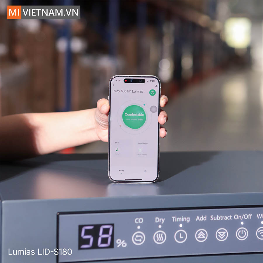 Để thích ứng linh hoạt với nhiều điều kiện độ ẩm khác nhau, Lumias LID-S180 tích hợp 3 chế độ hoạt động chuyên biệt. Chế độ CO cho phép máy vận hành liên tục, phù hợp môi trường cần duy trì độ khô ổn định trong thời gian dài. Chế độ Dry tự động cân bằng độ ẩm quanh mức 50%, góp phần hạn chế nấm mốc và bảo vệ hàng hóa lưu trữ. Bên cạnh đó, tính năng hẹn giờ bật/tắt trong 24 giờ hỗ trợ người dùng chủ động thiết lập lịch vận hành, tối ưu hiệu quả sử dụng năng lượng.