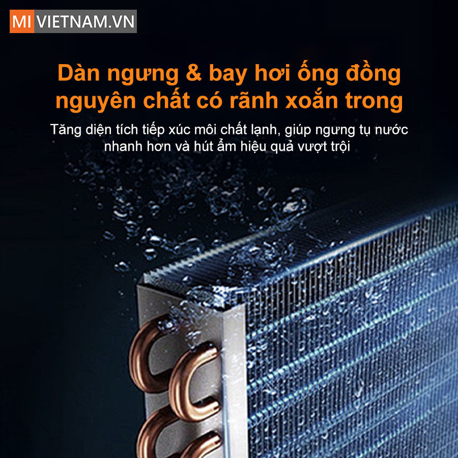 - Dàn bay hơi và ngưng tụ ống đồng rãnh xoắn giúp tăng trao đổi nhiệt