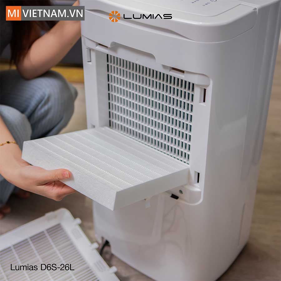 Bên cạnh việc kiểm soát độ ẩm, máy hút ẩm Lumias D6S-26L còn đóng vai trò như một thiết bị lọc không khí nhờ màng lọc HEPA H13 chất lượng cao. Màng lọc này có thể loại bỏ tới 99,97% hạt bụi siêu mịn kích thước 0,3 micromet, bao gồm bụi PM2.5, phấn hoa, lông thú, bào tử nấm mốc và nhiều tác nhân gây dị ứng khác.