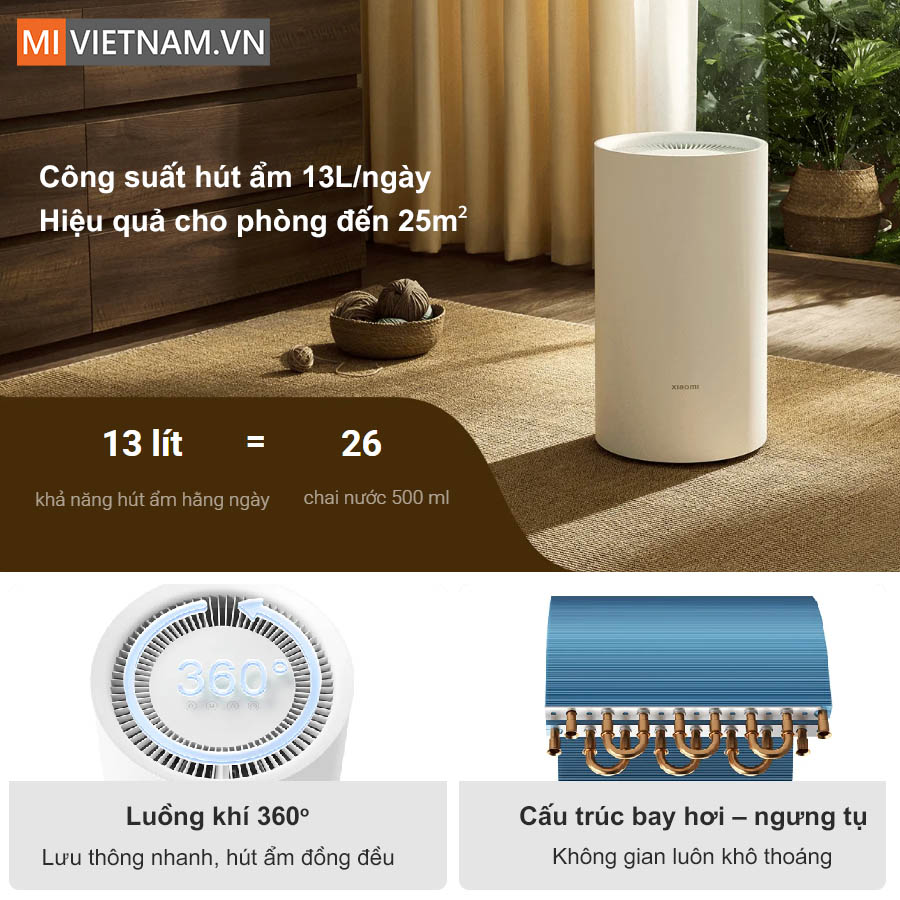 Máy hút ẩm thông minh Xiaomi Lite EU 13L là giải pháp cân bằng độ ẩm hiệu quả cho không gian sống hiện đại, nổi bật với khả năng hút ẩm nhanh 13L/ngày, vận hành êm ái chỉ 34dB và điều khiển thông minh qua ứng dụng Mi Home. Thiết bị được thiết kế gọn gàng, dễ bố trí trong nhiều không gian, tích hợp nhiều chế độ sử dụng linh hoạt cùng hệ thống an toàn đa lớp, mang đến trải nghiệm hút ẩm tiện nghi, an tâm cho cả gia đình.