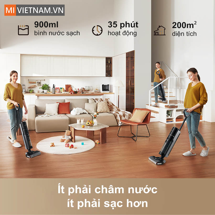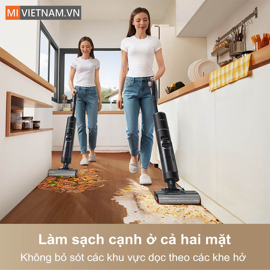 Các chuyển động đẩy – kéo trở nên tự nhiên như khi bạn sử dụng cây lau nhà truyền thống, nhưng nhẹ hơn nhiều và không gây mỏi cổ tay hay thắt lưng. Dù là lau dọc theo ghế, quanh chân bàn hay trong không gian hẹp, máy vẫn vận hành trơn tru, giúp việc dọn dẹp trở nên nhẹ nhàng và thoải mái hơn bao giờ hết.