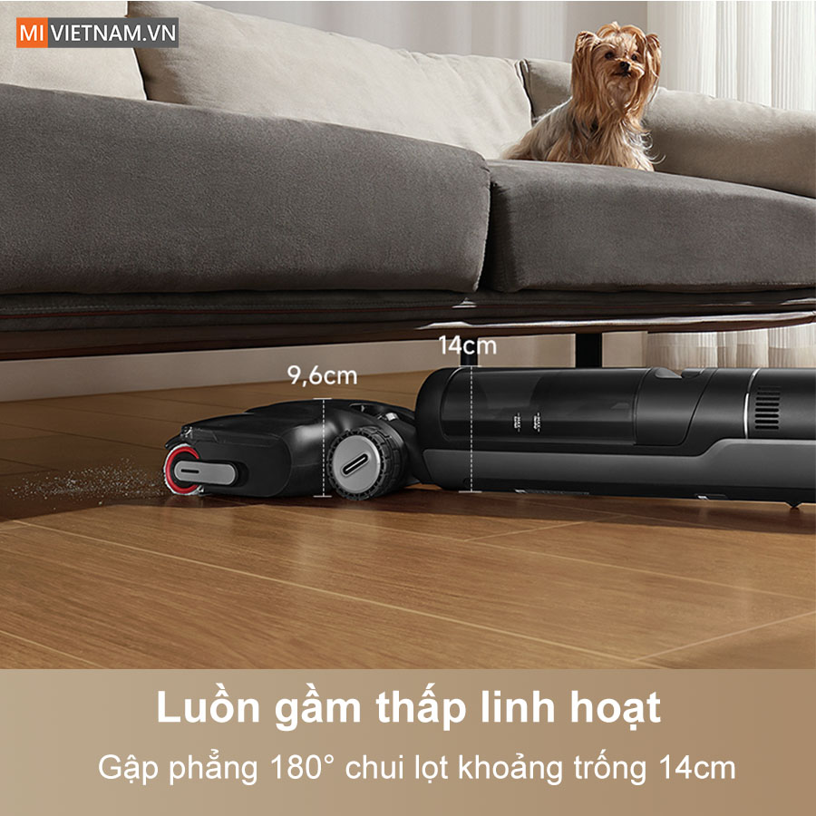 Máy hút bụi lau nhà cầm tay Dreame H12 Flexreach sở hữu đầu hút có thể gập phẳng 180°, cho phép chui lọt được những khoảng trống chỉ cao 14cm như gầm giường, ghế sofa, tủ thấp. Không chỉ vậy, cuộn lăn được thiết kế tràn viền hai cạnh giúp lau sạch sát các mép tường, chân tủ và các góc khuất mà chổi thường không thể chạm tới được, sạch bong sáng bóng từng kẽ hở. Với kiểu dáng không dây hiện đại, sản phẩm mang lại trải nghiệm nhẹ nhàng tiện lợi cho mọi thành viên trong gia đình.