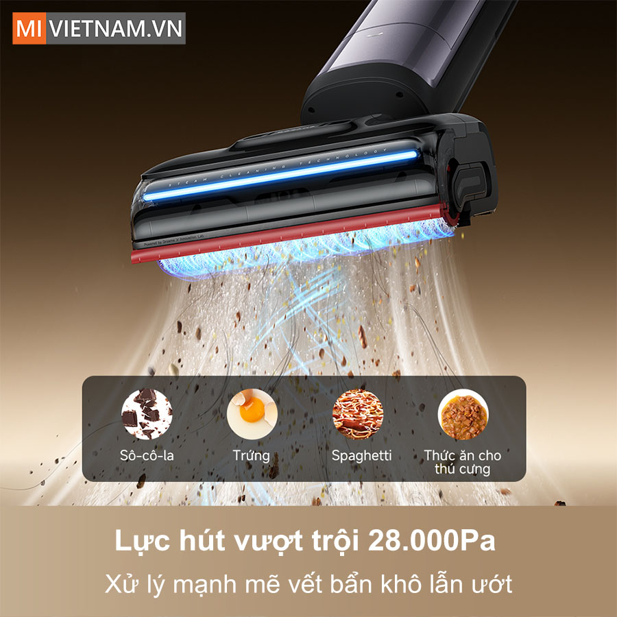 Lực hút siêu mạnh 28.000Pa, xử lý vết bẩn khô và ướt dễ dàng