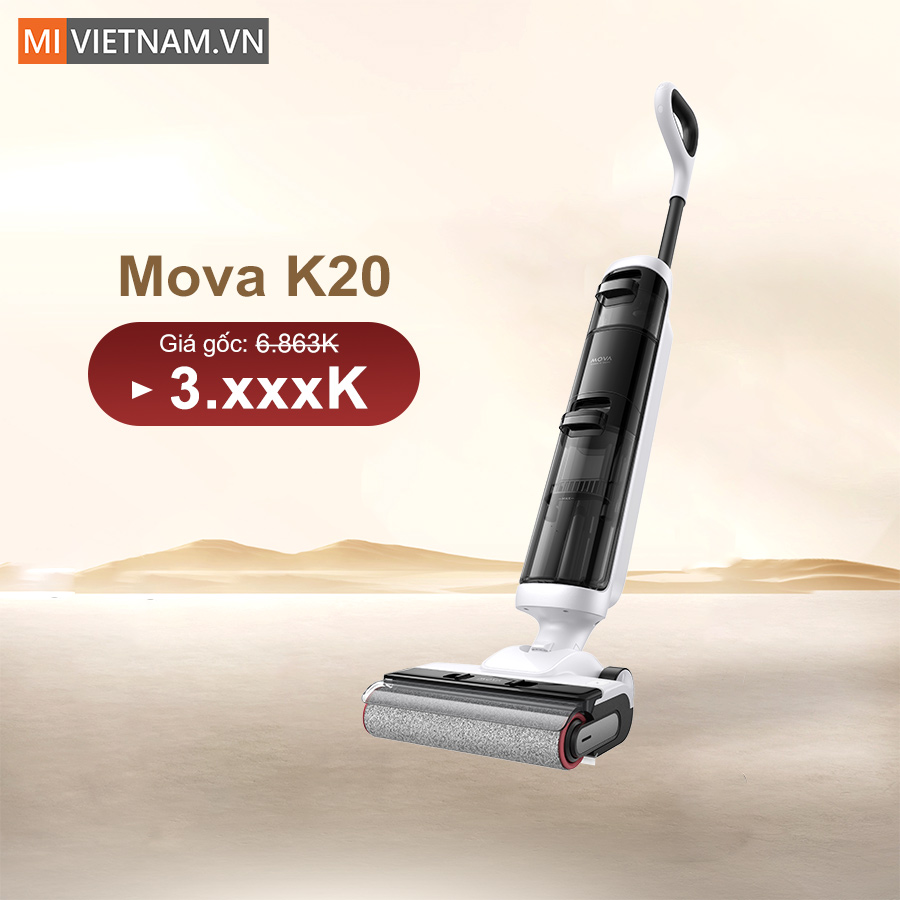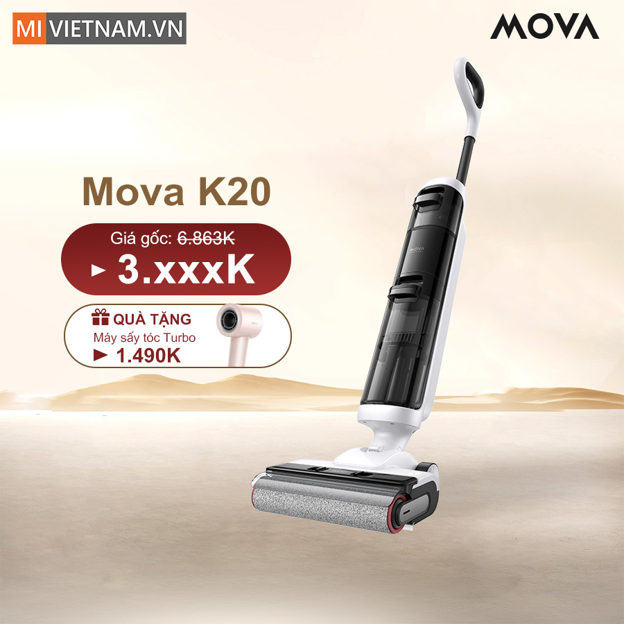 Máy hút bụi lau nhà cầm tay Mova K20 là giải pháp dọn dẹp khô và ướt linh hoạt cho không gian sống hiện đại. Sở hữu lực hút mạnh mẽ 7.000Pa, khả năng nhận diện độ bẩn thông minh cùng thiết kế nhẹ chỉ 4kg, Mova K20 giúp làm sạch nhanh chóng trên nhiều loại sàn mà không tốn nhiều sức. Kết hợp thời lượng pin ổn định, chổi lăn tràn viền và tính năng tự vệ sinh chổi, sản phẩm mang đến trải nghiệm lau dọn nhẹ nhàng, tiện lợi cho mọi gia đình.