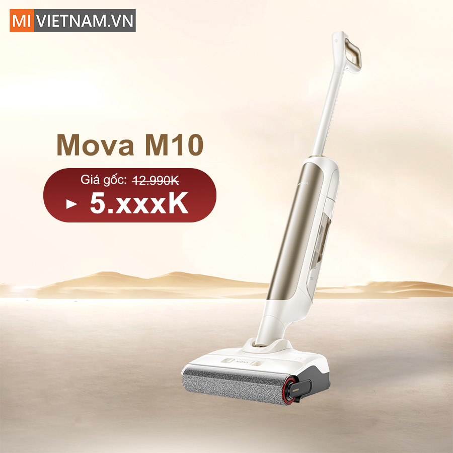 Máy hút bụi lau nhà cầm tay Mova M10 sở hữu lực hút mạnh mẽ 18.000Pa trong thiết kế siêu nhẹ chỉ 900g, giúp làm sạch nhanh gọn cả bụi khô lẫn vết bẩn ướt. Kết hợp khả năng xoay linh hoạt 90°, ngả phẳng 180° cùng công nghệ tự làm sạch, giặt cuộn lăn bằng nước nóng và diệt khuẩn thông minh, Mova M10 mang đến trải nghiệm lau dọn hiệu quả, nhẹ nhàng và tiện lợi cho mọi không gian sống.