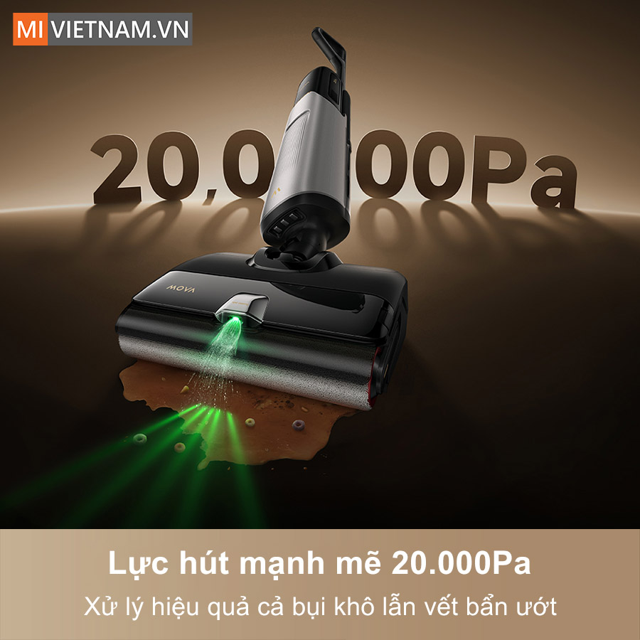 - Lực hút mạnh mẽ 20.000Pa xử lý hiệu quả cả bụi khô lẫn vết bẩn ướt.