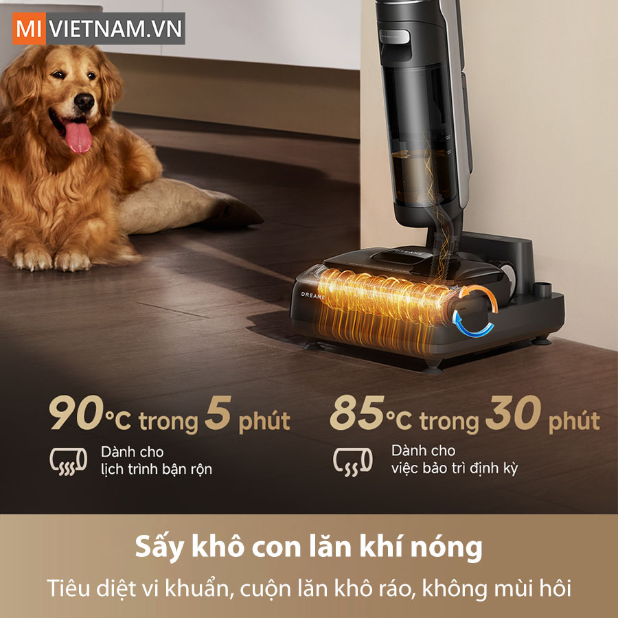 Hút bụi, vụn bánh và tóc gọn lẹ, sàn nhà sạch tinh tươm.