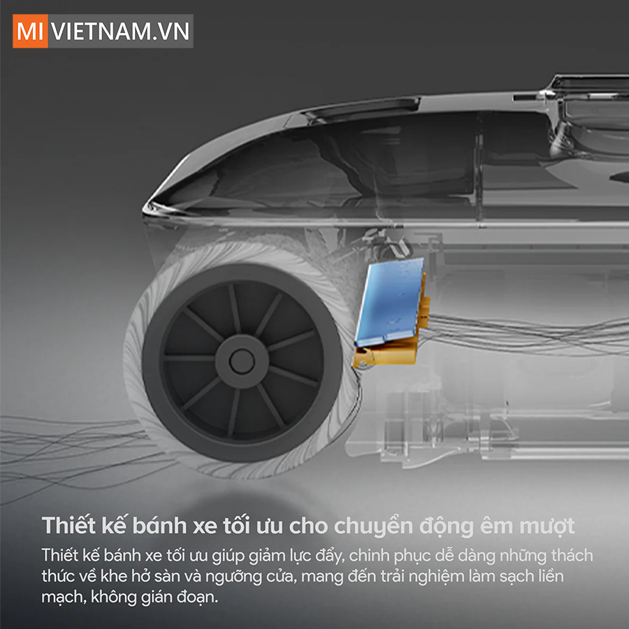 Máy hút bụi lau nhà cầm tay Roborock F25 Gen 2 được thiết kế với hệ thống bánh xe giúp tối ưu lực đẩy, giúp máy di chuyển nhẹ nhàng, giảm đáng kể áp lực khi sử dụng trong thời gian dài. Không chỉ vậy, thiết bị còn có khả năng vượt qua các khe hở nhỏ và ngưỡng cửa một cách mượt mà, đảm bảo quá trình làm sạch không bị gián đoạn, đồng thời gia tăng độ bền cho toàn bộ hệ thống.