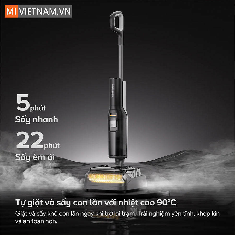 Sau khi giặt, hệ thống sấy khí nóng tích hợp sẽ nhanh chóng làm khô con lăn trong môi trường kín đa hướng, ngăn ngừa ẩm mốc và vi khuẩn phát triển. Người dùng có thể lựa chọn chế độ sấy nhanh chỉ trong 5 phút, đảm bảo con lăn khô gần như hoàn toàn (lượng nước dưới 1g) để sẵn sàng sử dụng ngay. Ngoài ra, chế độ sấy yên tĩnh kéo dài 22 phút với độ ồn thấp ≤ 56 dBA mang đến trải nghiệm vận hành êm ái, phù hợp sử dụng cả trong không gian cần sự yên tĩnh.