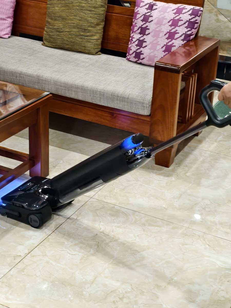 Thiết kế duỗi phẳng 180° cùng thân máy siêu mỏng chỉ 12,85 cm giúp Tineco Floor One S9 Artist Steam Pro dễ dàng luồn sâu vào các khu vực khó tiếp cận như gầm giường, gầm sofa hay tủ thấp. Chỉ với một lần thao tác, toàn bộ bụi mịn, tóc hay lông thú cưng đều bị cuốn trọn, trả lại mặt sàn sạch sẽ không tì vết.