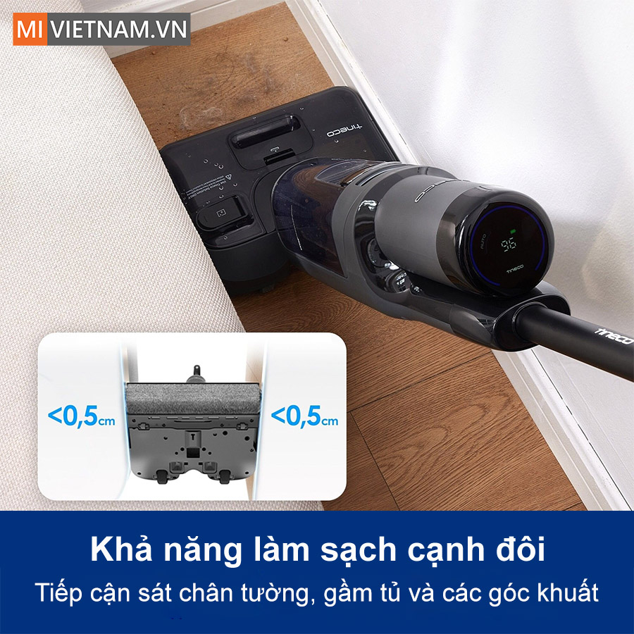 Không giống các máy hút bụi truyền thống thường để sót bụi ở mép tường, máy hút bụi lau sàn khô ướt Tineco FLOOR ONE S6 Stretch Extremeđược thiết kế với khả năng làm sạch cạnh đôi, cho phép chổi lăn tiếp cận sát chân tường, gầm tủ và các góc khuất. Đây là tính năng đặc biệt hữu ích với những không gian hẹp, hoặc khu vực có nhiều vật dụng kê sát vách mà bạn không muốn phải lau lại bằng tay.