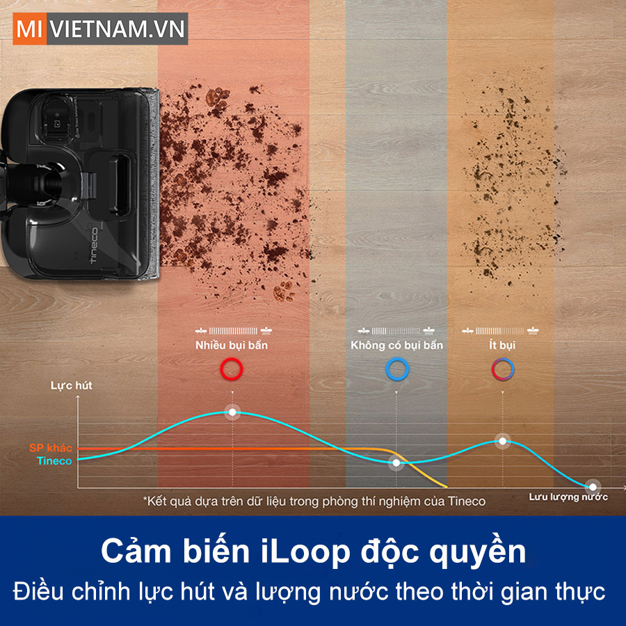 Cảm biến iLoop thông minh liên tục theo dõi mức độ bụi bẩn trên bề mặt sàn và điều chỉnh lực hút cũng như lượng nước cần thiết cho phù hợp. Điều này giúp máy hút bụi lau sàn khô ướt Tineco FLOOR ONE S6 Stretch Extreme tiết kiệm pin, giảm lãng phí nước và tối ưu hóa hiệu quả dọn dẹp cho từng khu vực khác nhau. Đặc biệt, iLoop giúp duy trì hiệu suất hút ổn định mà không cần can thiệp thủ công.