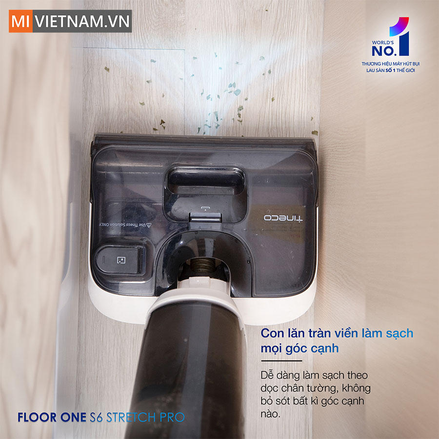 Không giống như các con lăn thông thường có viền nhựa giới hạn phạm vi tiếp cận, Tineco Floor One Stretch S6 Pro được trang bị con lăn tràn viền, giúp tiếp cận sát các khu vực khó làm sạch như: chân tường, góc tủ, khe hẹp dưới gầm bàn ghế hay là các góc khuất mà máy lau nhà truyền thống không thể chạm tới. Thiết kế này đảm bảo không có bụi bẩn hay mảnh vụn nào bị bỏ sót, giúp không gian sống của bạn luôn sạch sẽ, trong lành một cách hoàn hảo.
