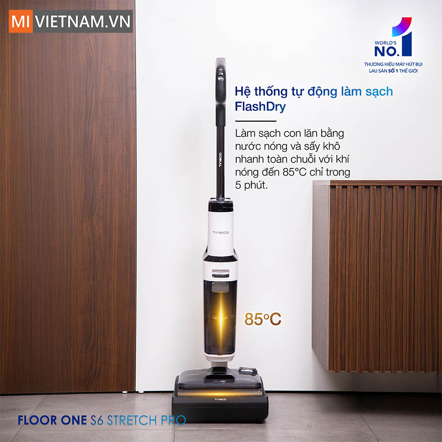Máy lau nhà khô ướt cầm tay Tineco Floor One Stretch S6 Pro với lực hút mạnh mẽ 20.000Pa, thiết kế siêu mỏng chỉ 13cm, thiết bị này dễ dàng len lỏi vào mọi ngóc ngách. Hơn thế nữa, công nghệ DualBlock Anti-tangle chống rối thông minh kết hợp cùng con lăn tràn viền giúp sàn nhà sạch bóng không tì vết. Đặc biệt, tính năng sấy khô 85°C chỉ trong 5 phút giúp loại bỏ độ ẩm, ngăn ngừa vi khuẩn và nấm mốc. Cảm biến iLoop™ tối ưu hiệu suất làm sạch, còn pin mềm dạng túi bền bỉ mang lại trải nghiệm sử dụng lâu dài.