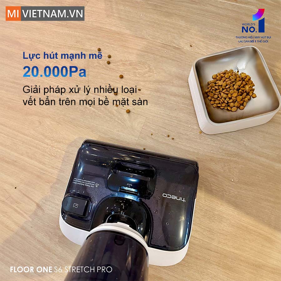 Với lực hút mạnh mẽ 20.000Pa, Tineco Floor One Stretch S6 Pro dễ dàng đánh bay bụi bẩn, mảnh vụn, lông thú cưng và cả những vết bẩn cứng đầu trên sàn nhà. Đặc biệt, không chỉ hút sạch bụi khô, máy còn loại bỏ hoàn toàn nước bẩn sau khi lau, giúp sàn nhà nhanh chóng khô ráo, hạn chế trơn trượt và mang lại không gian sạch thoáng tối ưu.