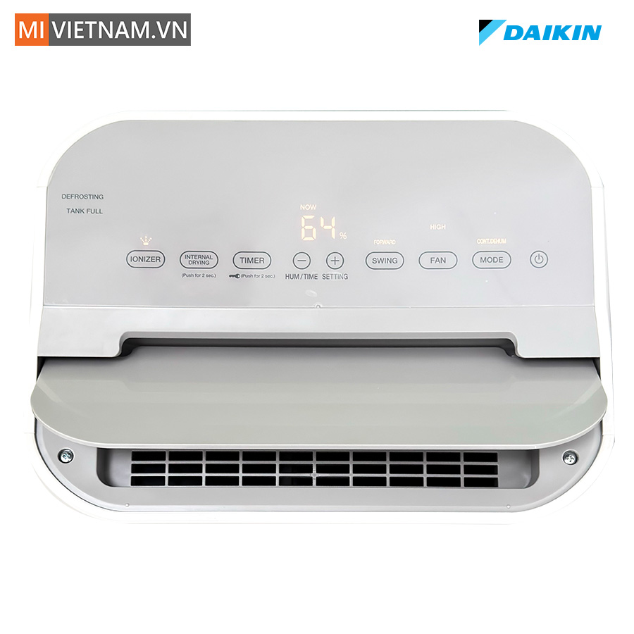 Bên cạnh đó, màn hình LED lớn hiển thị rõ ràng độ ẩm và thời gian hẹn giờ, cùng hệ thống đèn báo trạng thái giúp theo dõi hoạt động máy dễ dàng. Bảng điều khiển được bố trí khoa học, chia nhóm tính năng rõ ràng như chế độ, quạt, đảo gió, hẹn giờ, độ ẩm… Tất cả mang đến trải nghiệm vận hành tiện lợi và hiện đại, phù hợp cho cả gia đình lẫn văn phòng.