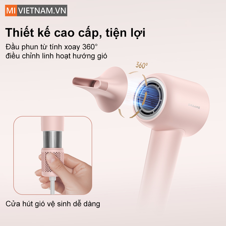 Đặc biệt, vị trí cửa hút gió được thiết kế sáng tạo giúp hạn chế tối đa nguy cơ tóc bị hút vào trong khi sử dụng, đồng thời dễ dàng vệ sinh sau mỗi lần dùng. Có thể nói, máy sấy tóc Dreame Hair Gleam không chỉ hiệu quả mà còn thể hiện phong cách sống tinh gọn, hiện đại.