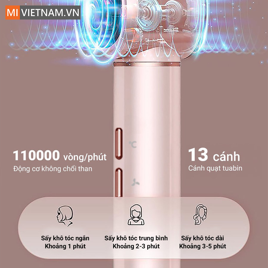 • Công suất 1300W, động cơ 110.000 vòng/phút sấy khô nhanh 1–3 phút