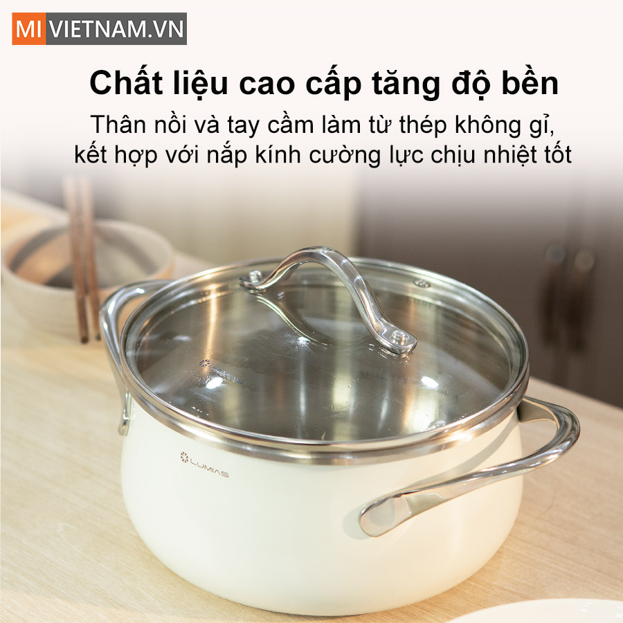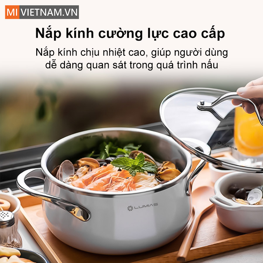 | Chất liệu | Thân nồi thép không ghỉ Nắp kính cường lực |