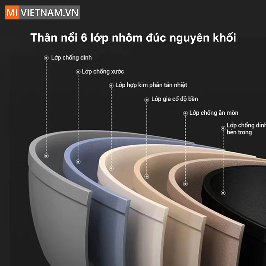 - Thân nồi 6 lớp nhôm đúc nguyên khối, bền chắc, tỏa nhiệt đều