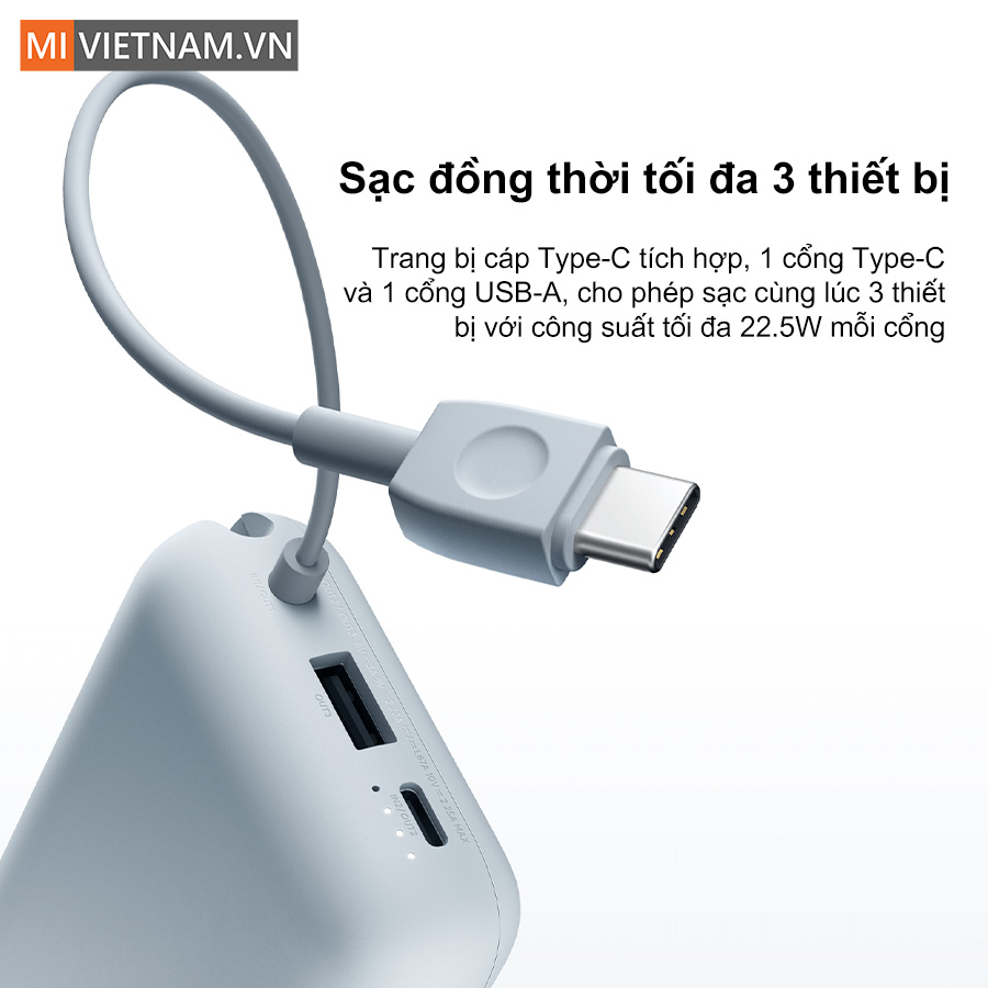 Pin sạc dự phòng Xiaomi Power Bank 10000mAh (Kèm cáp) là giải pháp sạc di động nhỏ gọn, tiện lợi cho người dùng thường xuyên di chuyển. Sản phẩm hỗ trợ sạc nhanh hai chiều 22.5W, cho phép sạc đồng thời 3 thiết bị và tích hợp sẵn cáp USB-C, giúp đơn giản hóa tối đa việc mang theo phụ kiện sạc hằng ngày.