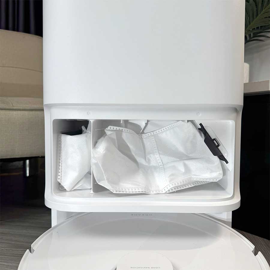 Điểm nổi bật đáng giá trên Dreame D20 Ultra chính là trạm sạc đa năng PowerDock™, tích hợp khả năng tự động đổ bụi nhờ công nghệ DualBoost 2.0™. Với hệ thống hút hai chiều tối ưu hóa luồng khí, bụi bẩn từ hộp chứa trong robot sẽ được hút sạch xuống túi bụi 3,2L đặt trong dock sạc – một cách nhẹ nhàng, hiệu quả và không gây tắc nghẽn. Nhờ vậy, người dùng có thể yên tâm tận hưởng lên đến 100 ngày làm sạch liên tục mà không cần phải đổ bụi thủ công, vô cùng tiện lợi cho cuộc sống bận rộn.