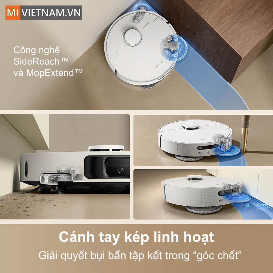 Hệ thống chổi cạnh có thể mở rộng kết hợp với giẻ lau tự động mở góc và xoay linh hoạt cho phép robot làm sạch hiệu quả ngay cả dọc theo tường hoặc khu vực hẹp mà các mẫu thông thường thường bỏ lỡ.