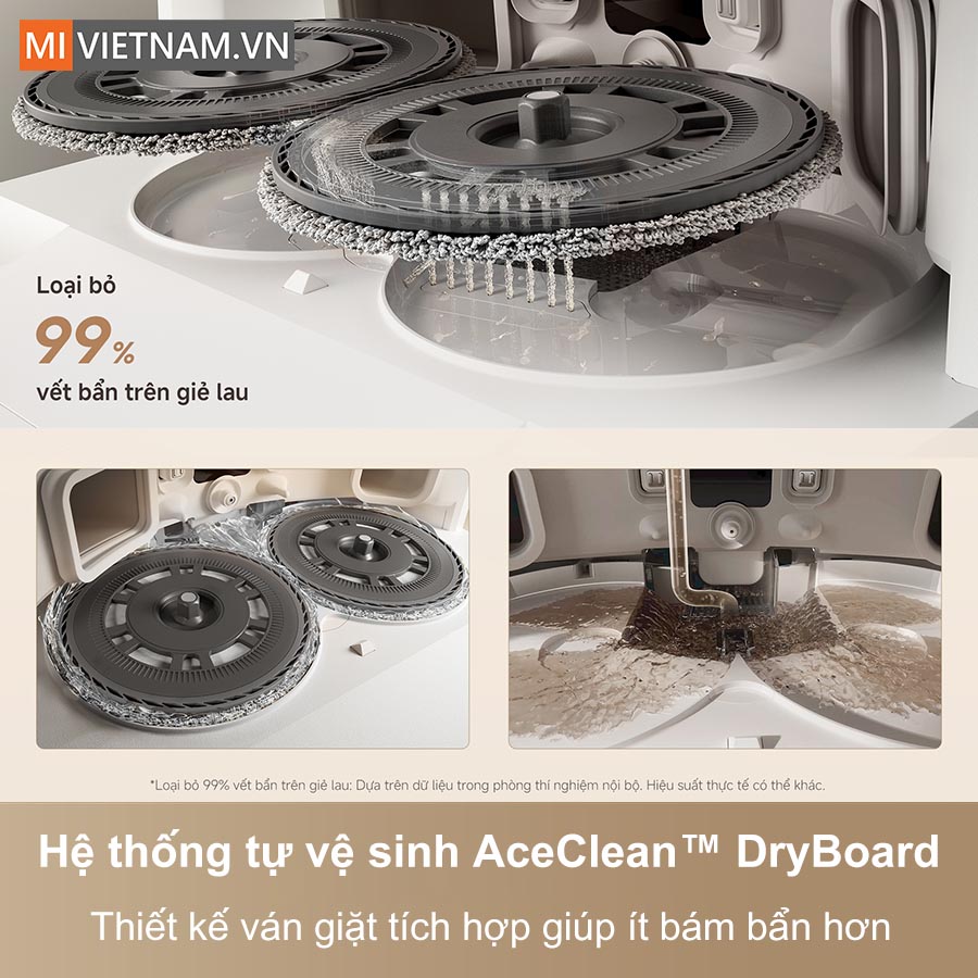 - Tự động giặt giẻ thông minh, loại bỏ 99% vết bẩn còn bám lại