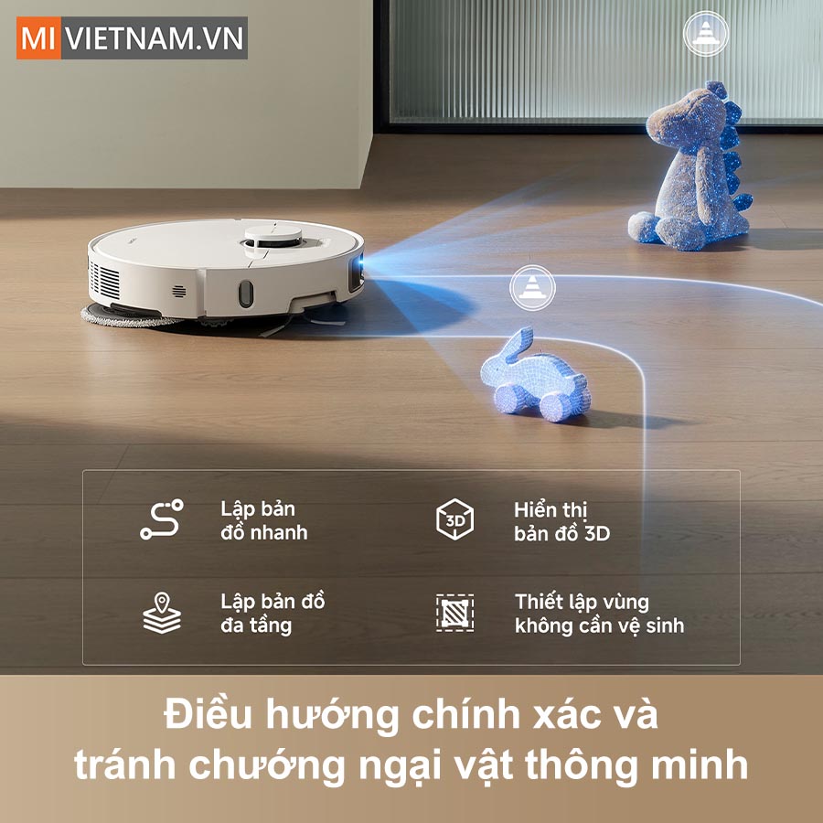 Robot có khả năng lưu trữ bản đồ chi tiết lên đến 4 tầng, phù hợp cho nhà nhiều lầu hoặc căn hộ phức hợp. Mỗi tầng đều được robot tự động nhận diện, phân vùng và thiết lập lộ trình làm sạch riêng biệt. Nhờ đó, người dùng không cần thiết lập lại thủ công mỗi khi robot di chuyển giữa các khu vực.