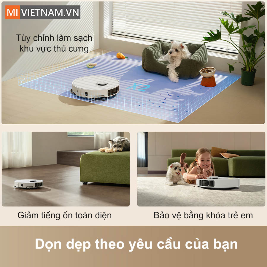 Robot hút bụi Dreame L10s Ultra Gen 3 hướng đến môi trường sống an toàn và thân thiện với vật nuôi. Robot cho phép tùy chỉnh chế độ vệ sinh riêng cho khu vực thú cưng, đồng thời tích hợp khóa trẻ em (Child Lock) và công nghệ giảm ồn toàn diện, giúp quá trình làm sạch diễn ra êm ái, không làm phiền giấc ngủ hay sinh hoạt hàng ngày.