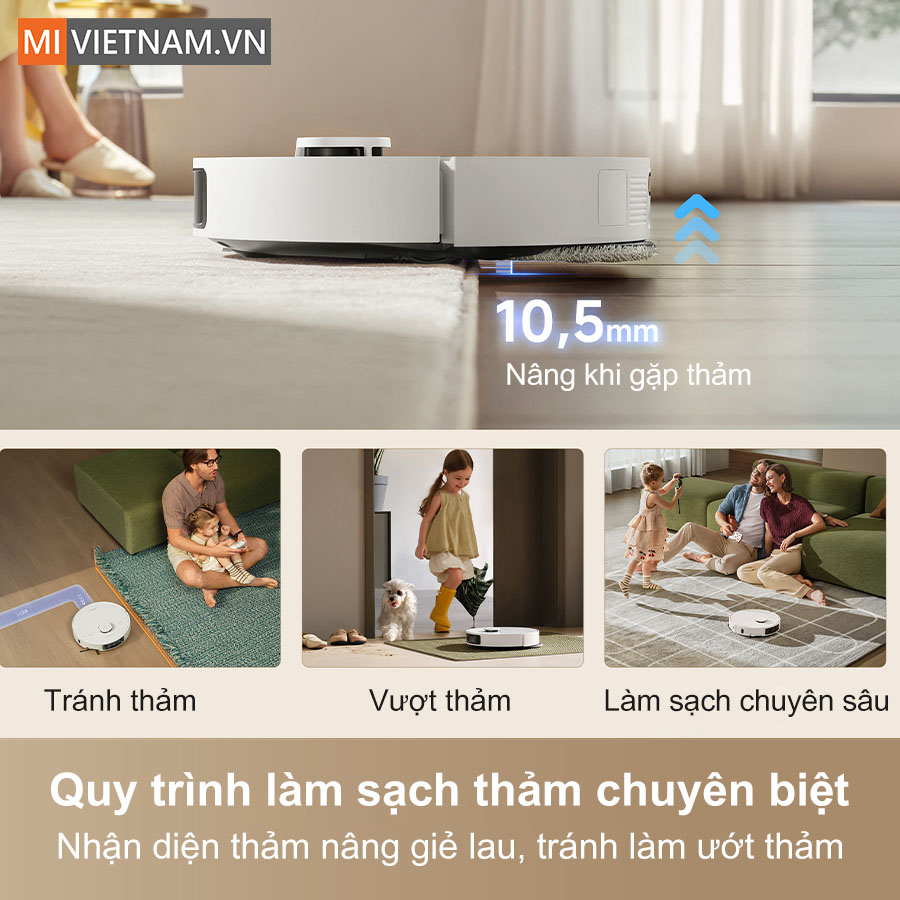 - Khả năng tự nâng giẻ lau thông minh 10.5mm bảo vệ thảm tối ưu