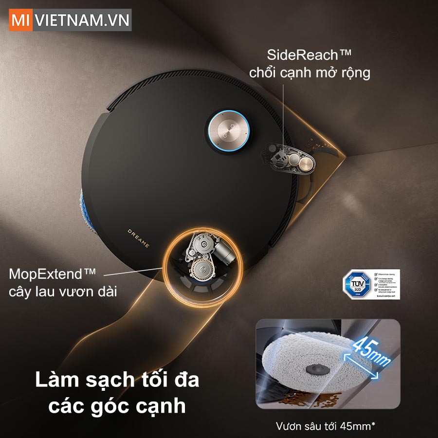- MopExtend™: giẻ lau có thể vươn sâu tới 45mm, len lỏi vào các góc tường và gầm nội thất để loại bỏ hoàn toàn bụi bẩn.