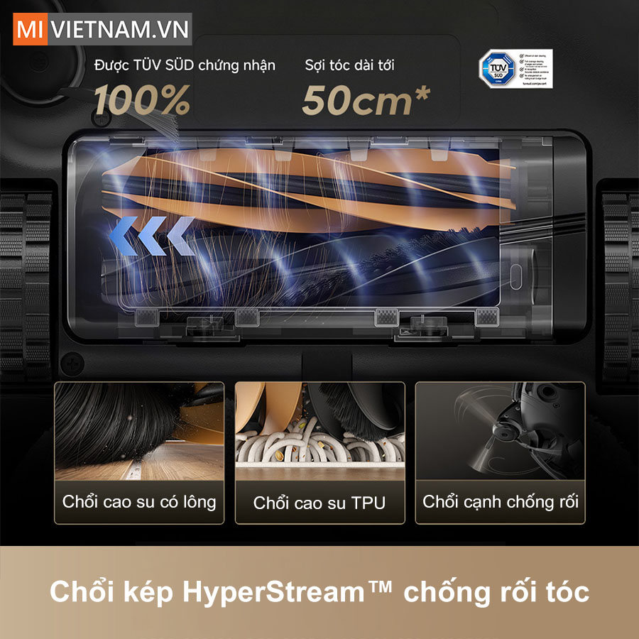 - Làm sạch sâu, chống rối tóc với hệ thống chổi kép HyperStream™ DuoBrush