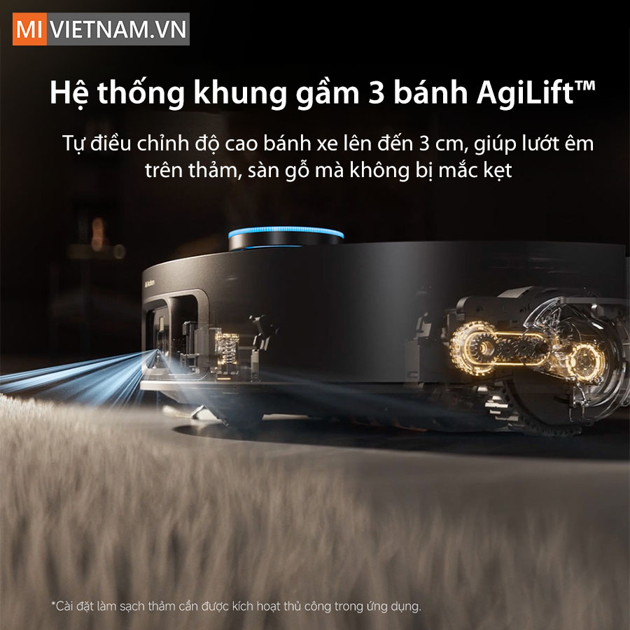 Được trang bị khung gầm Triple-Wheel AgiLift™, robot hút bụi lau nhà Dreame X50 Pro Ultra đạt độ linh hoạt tối đa trong mọi địa hình. Thiết kế này cho phép robot tự điều chỉnh độ cao bánh xe lên đến 3 cm, giúp lướt êm trên thảm, sàn gỗ hay gạch men mà không bị mắc kẹt.