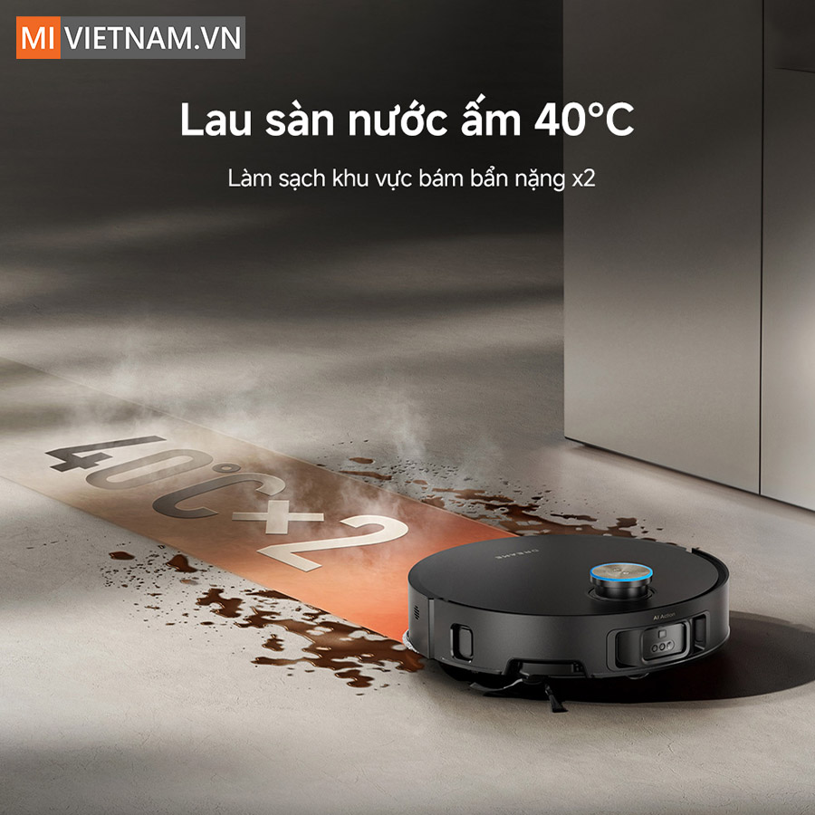Dreame X50 Pro Ultra sở hữu hệ thống lau nước ấm 40°C kết hợp bổ sung nước lau tự động, giúp làm mềm và hòa tan các vết dầu, dấu chân hay vết bẩn khô một cách dễ dàng. Khi gặp vùng sàn ô nhiễm nặng, robot sẽ tăng gấp đôi cường độ làm sạch, điều chỉnh 32 mức lượng nước khác nhau để đạt hiệu quả tối ưu.
