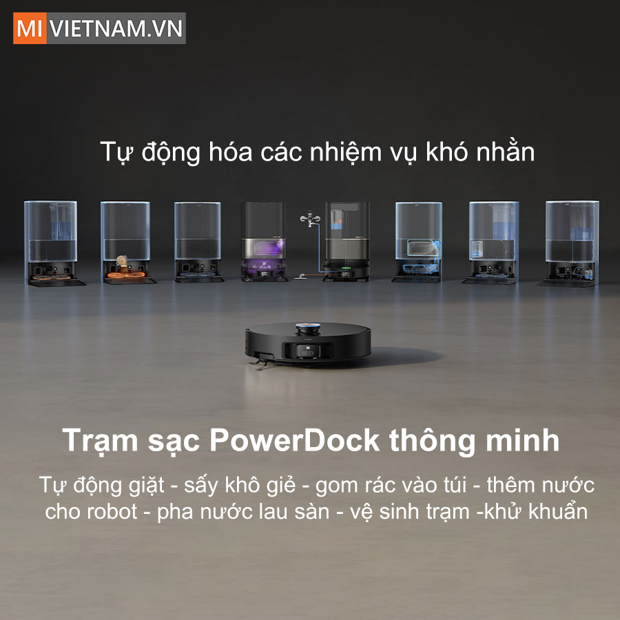 - Tự pha nước lau sàn và thêm nước tự động: Hệ thống tự động thêm nước lau sàn và cấp nước, sẵn sàng cho các lần sử dụng tiếp theo.
