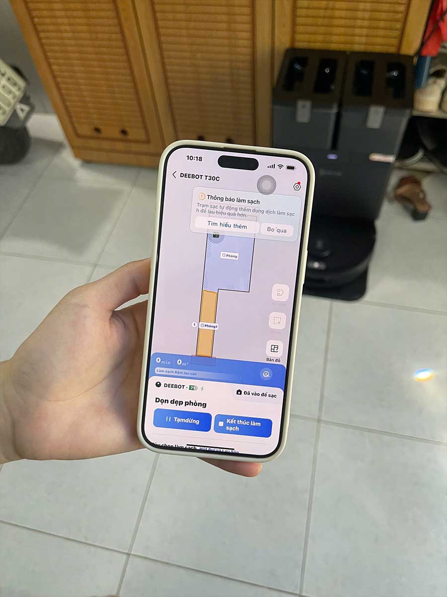 Robot chạy êm và tự pha nước lau sàn rất tiện. Dịch vụ lắp đặt của shop quá tuyệt