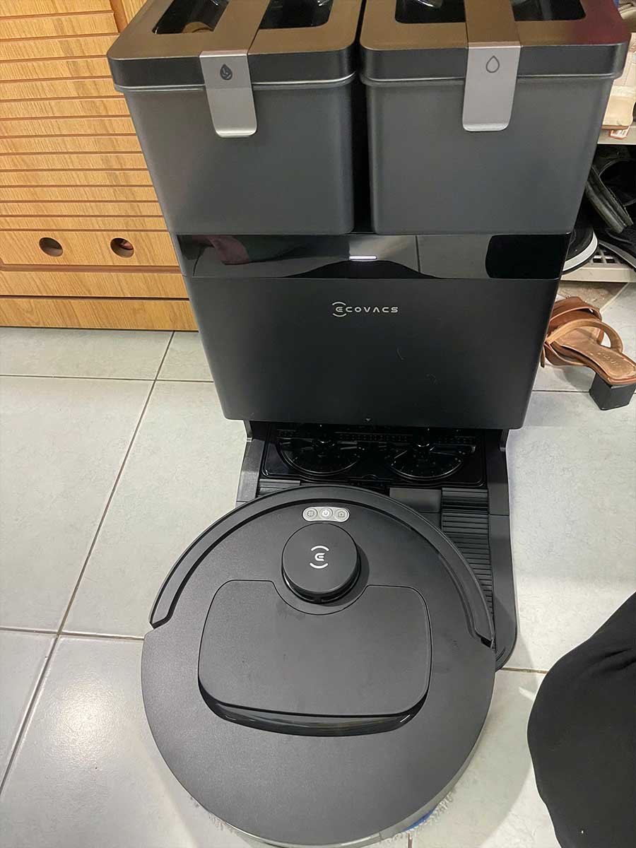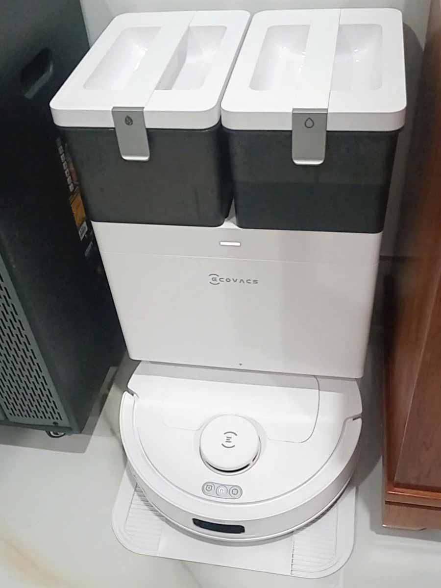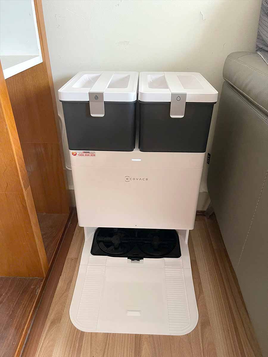 Trạm sạc đa năng OMNI đi kèm với robot Ecovacs T30C giúp giải phóng hoàn toàn công việc lau chùi giẻ lau hay đổ bụi thủ công.
