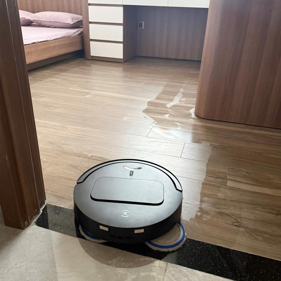 Khi di chuyển sát mép tường hoặc bao quanh chân bàn ghế, phần giẻ lau sẽ tự động vươn ra để tiếp cận sâu vào các góc khuất. Cảm biến mép tường tinh vi giúp robot duy trì khoảng cách milimet chính xác, đảm bảo làm sạch hiệu quả mà không gây va đập mạnh vào nội thất.