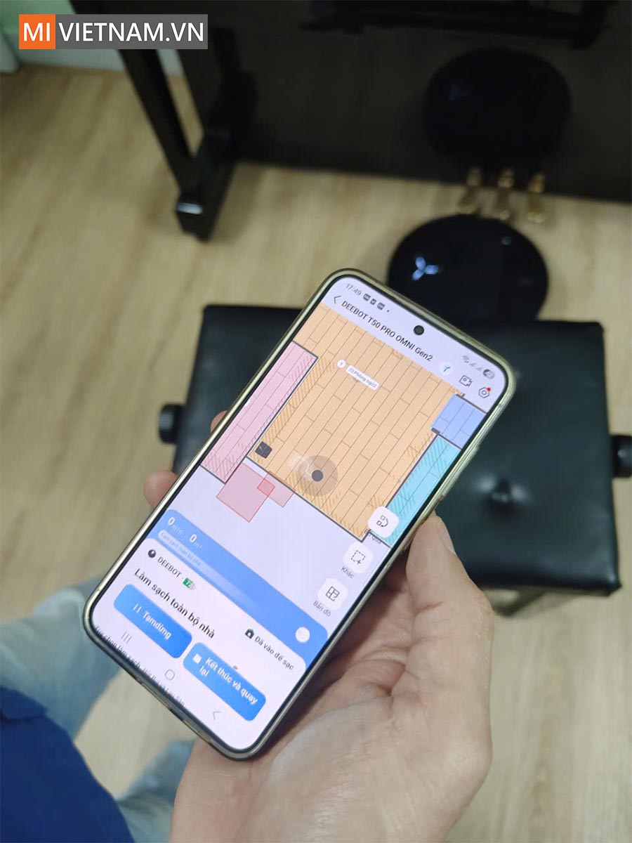 Không chỉ dừng lại ở các phím bấm vật lý hay ra lệnh bằng giọng nói, người dùng còn có thể làm chủ hoàn toàn Deebot T50 Pro Gen 2 thông qua ứng dụng EcovacsHome trên điện thoại thông minh. Với giao diện tiếng Việt thân thiện, bạn dễ dàng quản lý bản đồ 3D ngôi nhà, thiết lập tường ảo chặn các khu vực cấm hoặc tùy chỉnh chuyên sâu lực hút, lượng nước lau cho từng phòng cụ thể.