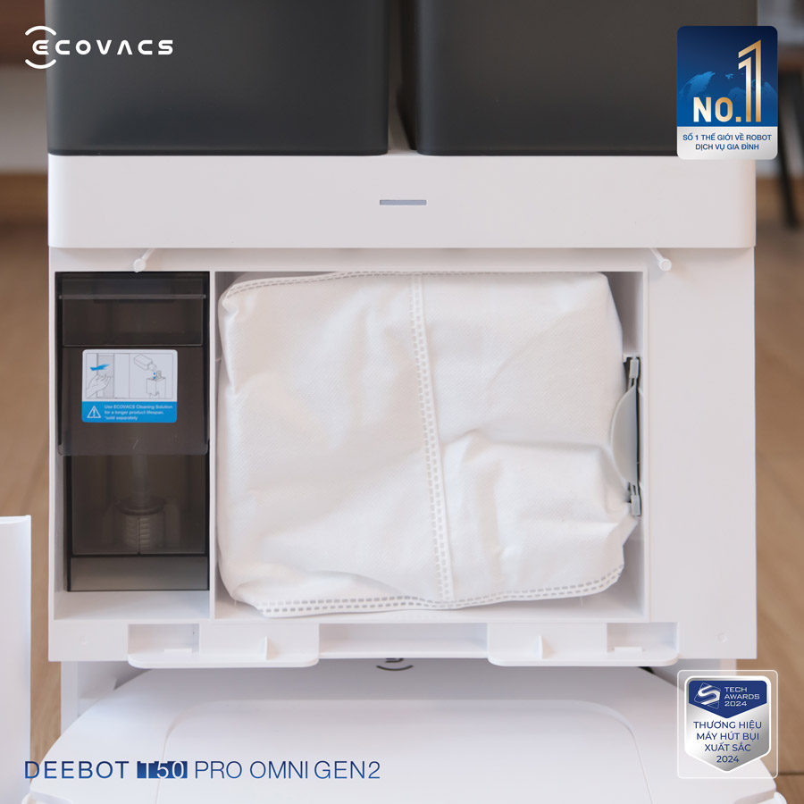 Sức mạnh thực sự của Ecovacs T50 Pro Omni Gen 2 còn nằm ở trạm sạc OMNI đa nhiệm, giúp người dùng quên đi việc dọn dẹp trong nhiều tuần: