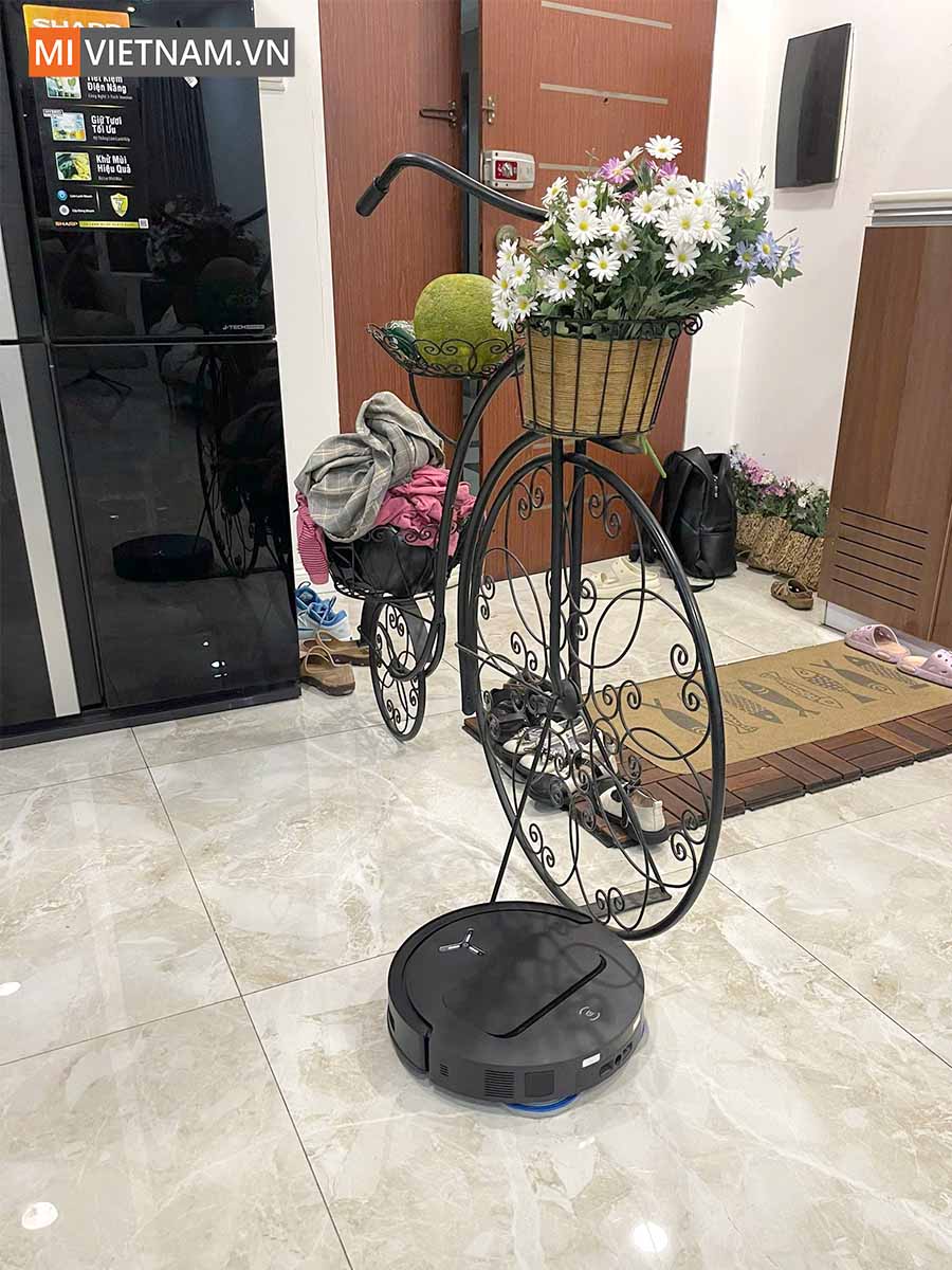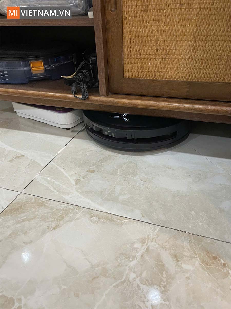 Điểm cộng lớn của hệ thống này là khả năng nâng giẻ lau tự động 9mm. Khi phát hiện thảm, robot sẽ tự động nâng đế lau lên để tránh làm ướt thảm, chỉ thực hiện chức năng hút bụi.